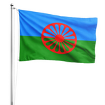 Il se compose de deux bandes horizontales, bleue et verte, surmontées d’une roue rouge à seize rayons. Ce choix n’est pas anodin : il exprime l’origine indienne des Roms ainsi que leur histoire marquée par la migration et la liberté de mouvement. Ce drapeau est officiellement reconnu en 1971 lors du premier Congrès mondial rom tenu à Londres.